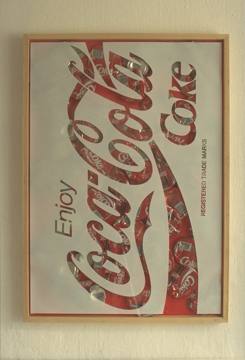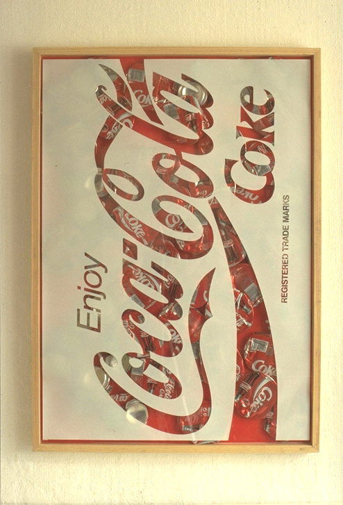 Coke 95-3 / 800 x 600 x 25 mm / screen print on acrylic sheet, cans, frame / 1995