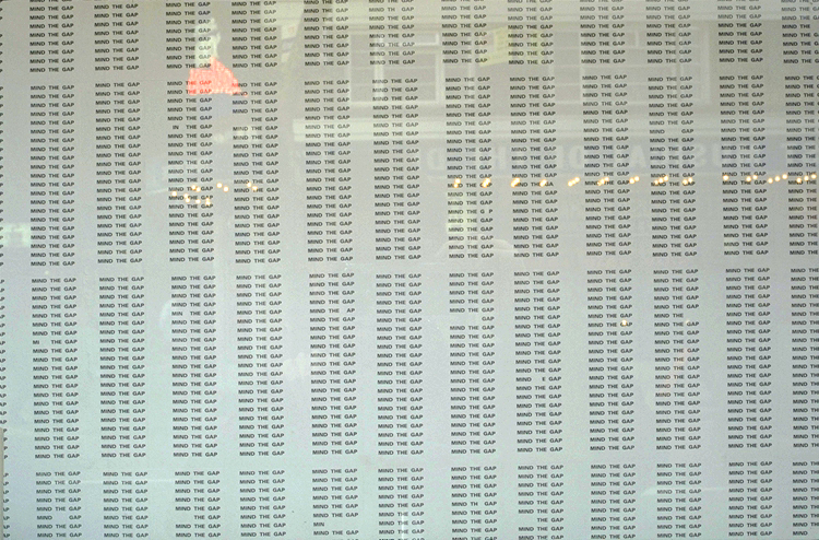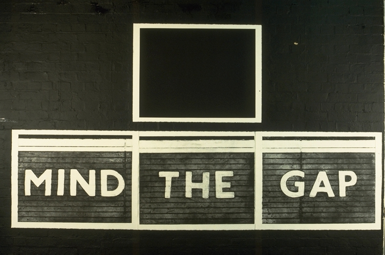 The "MIND THE GAP" series is the culmination of these works. By moving this sign from the subway platform into the context of art, I changed its meaning to "there is a gap between people. Be careful."