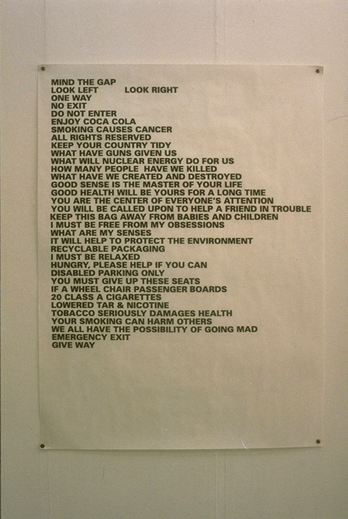 And I eliminated all the visual images and made a text-only work like Jenny Holzer.